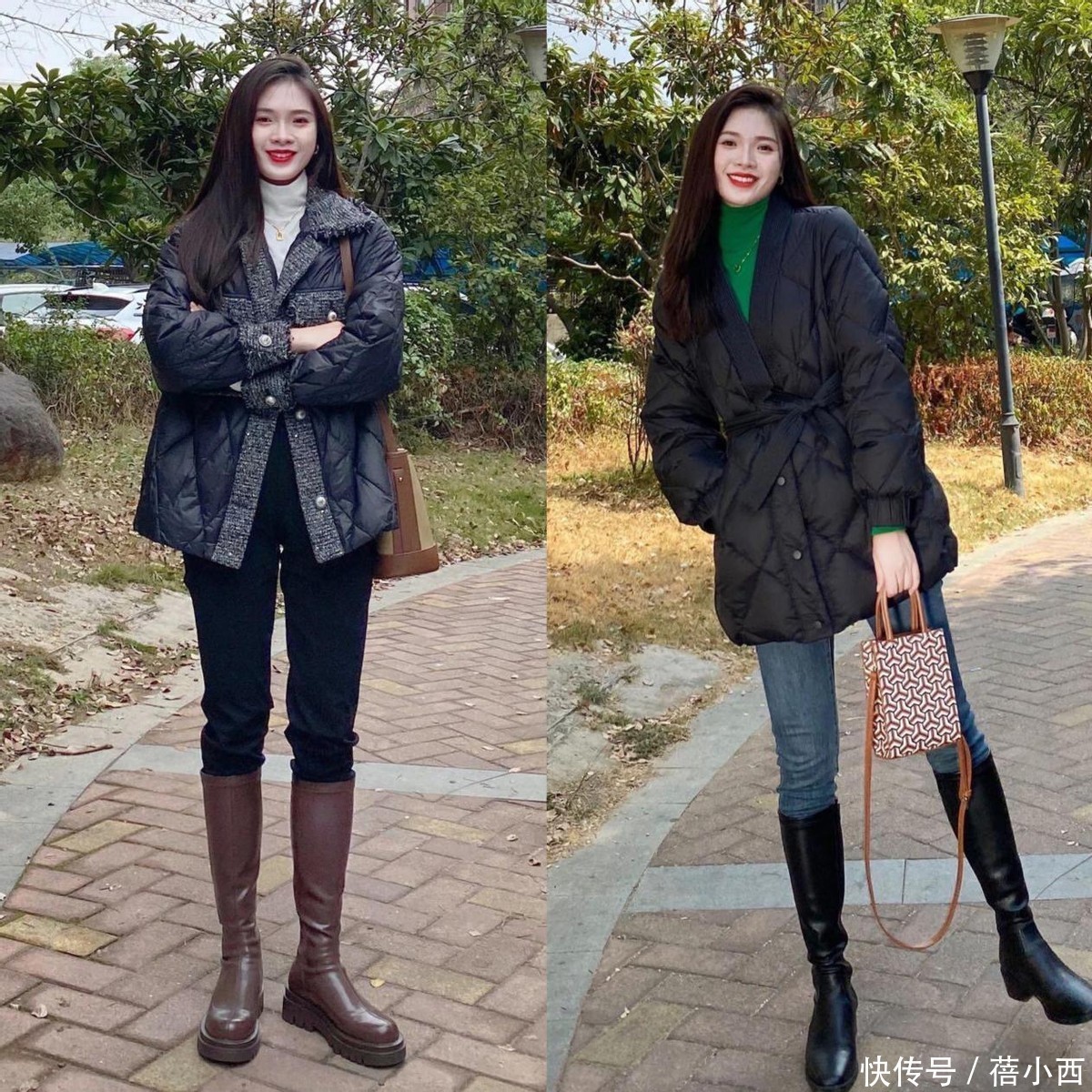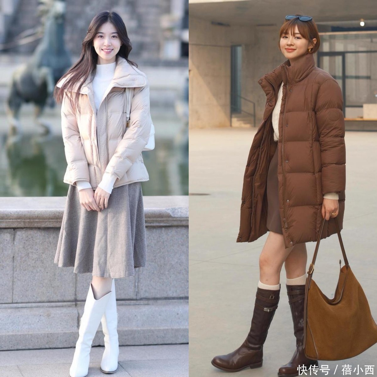 长筒靴和羽绒服的组合真实很显腿长,姐妹们别以为羽绒服和长筒靴不搭,选对花样就能秒变长腿精。优先选3-5厘米的粗跟长筒靴,靴筒贴合腿部线条但不紧绷,长度卡在膝盖下方5厘米摆布,对小腿微粗的姐妹相配友好。