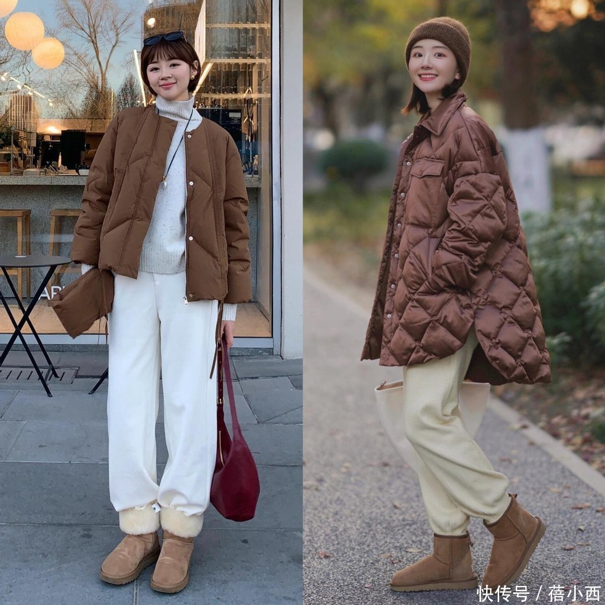 雪地靴和羽绒服的搭配真实太御寒了,这一组“王炸组合”让咱们再也无须为了温度燃烧仪态。况且当今的雪地靴早就不所畴前那种又肿又笨的面貌了,选短筒、鞋头微方圆的花样,从简还利落,上半身用短款羽绒服搭加绒的糯米裤,把裤脚轻轻塞进雪地靴里,软乎乎的相配可儿,合适深广遛弯、逛街。