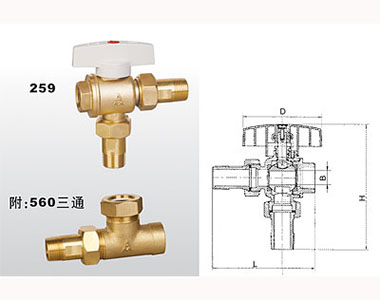 埃美柯黃銅暖氣三通球閥259_259A