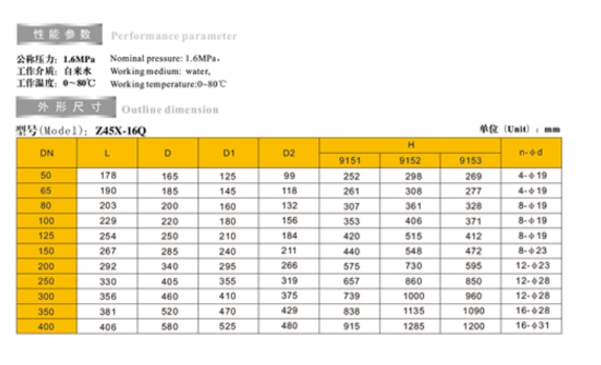 埃美柯彈性座封暗桿閘閥9151外形尺寸:
